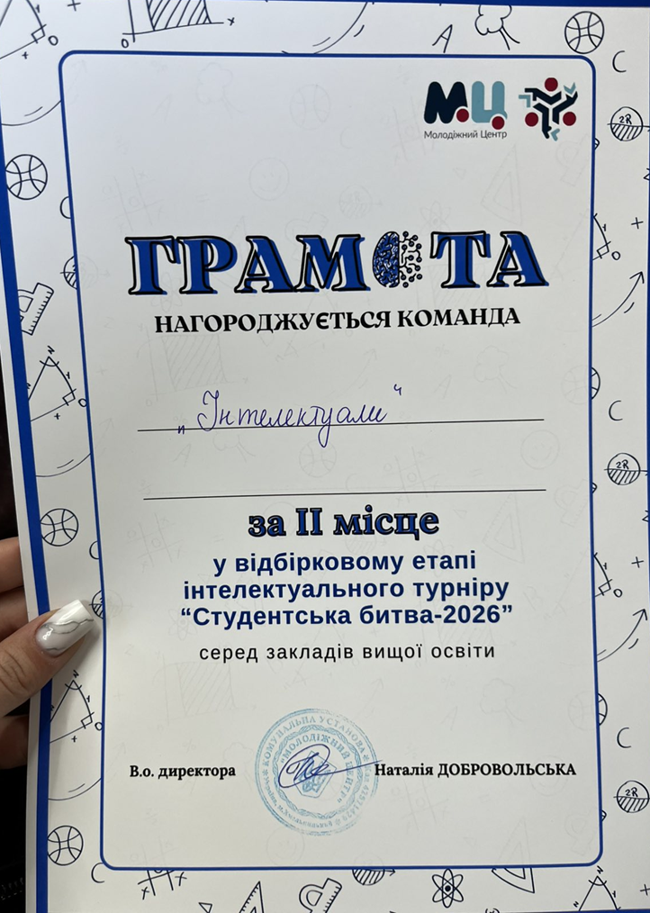 Щиро вітаємо команду «Інтелектуали» з почесним ІІ місцем та дякуємо за гідне представлення гуманітарно-педагогічного факультету! Бажаємо учасникам нових інтелектуальних звершень, подальших перемог, натхнення, невичерпної енергії та впевненості у власних силах. Хай здобутий досвід стане ще одним кроком до майбутніх успіхів та яскравих досягнень!