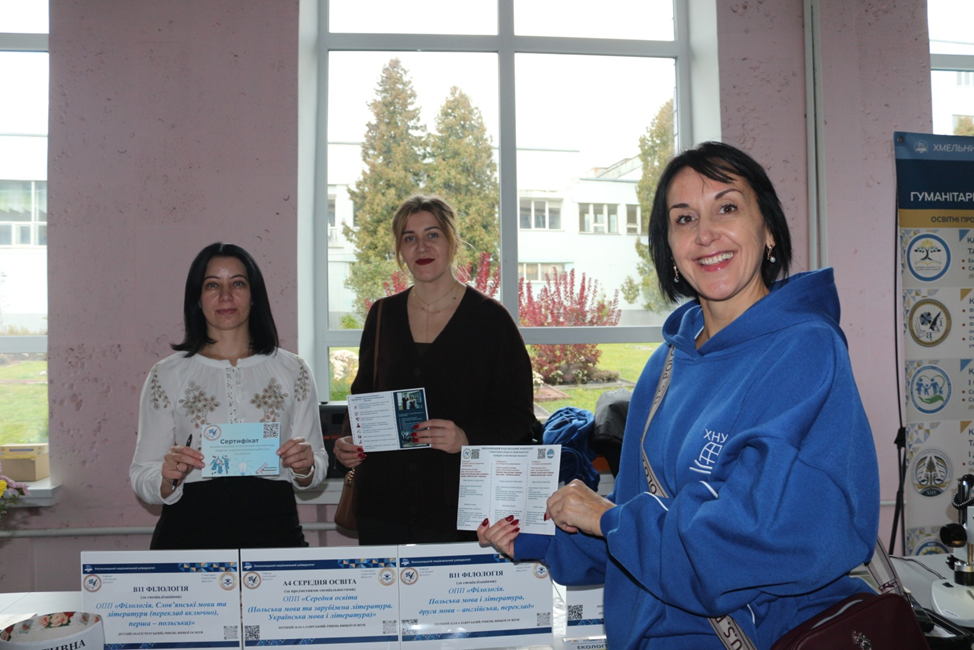 Гуманітарно-педагогічний факультет – один із факультетів-учасників цього заходу. Усі кафедри: української філології, слов’янської філології, екології та біологічної освіти, технологічної та професійної освіти і декоративного мистецтва, соціальної роботи і соціальної педагогіки – взяли активну участь у представленні спеціальностей та освітніх програм, які успішно розвиваються на їхніх кафедрах. І науково-педагогічні працівники кафедр, і здобувачі вищої освіти, які навчаються на освітніх програмах використовували максимум можливостей, щоб ознайомити майбутніх абітурієнтів зі специфікою освітніх програм, кваліфікаціями та можливостями навчання у ХНУ. Це були і майстер-класи, і інтерактиви, і розіграш лотереї, і конкурси, і елементи визначення здібностей до певної професії, і просто спілкування про реалії і перспективи навчання.